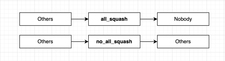 all(others)에 대해 어떻게 처리할지 선택한다. all_squash는 Others로 접근하는 모든 사용자를 nobody로 강등시킨다. 해당 설정은 주로 공유 스토리지와 같은 환경에서 사용된다. 반면, no_all_squash는 others에 대한 별도의 강등 없이 그대로의 UID를 인정한다.