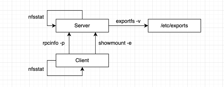 | showmount -e | 클라이언트가 서버에게 "export된 디렉터리를 알려주세요." 물으면 서버가 rpc.mountd의 export 테이블을 기준으로 응답한다. | $ showmount -e 192.168.5.13 |