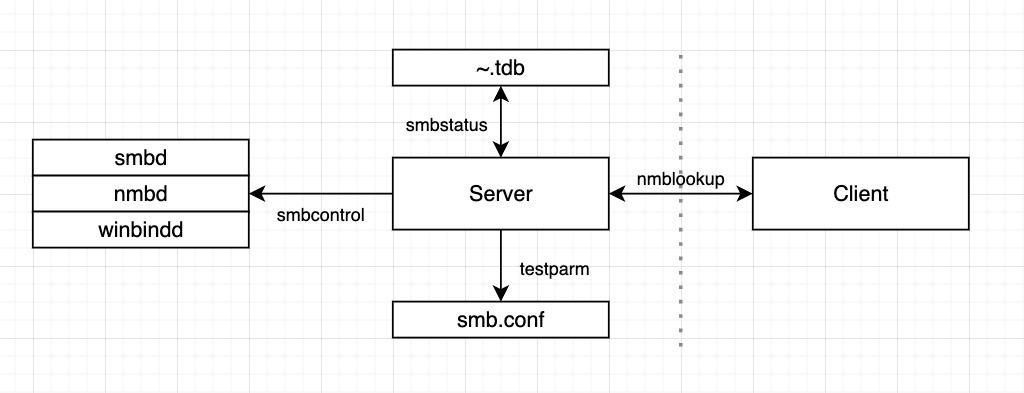 | testparm | 설정 파일(/etc/samba/smb.conf) 검사/유효성 확인 | 서버 → 자신 | testparm |