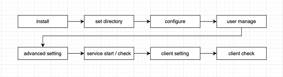파일 관련 서비스들 대부분이 비슷한 양상을 보이고 있다. 설치와 디렉터리 생성 및 권한 설정. 그리고, 각각에 주어진 configure 파일로 정책을 설정하고 이를 구동하고 제대로 구동되어있는지 확인하는 순서다.
