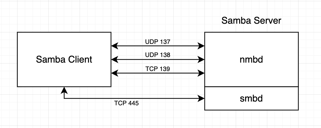 | nmbd | UDP | 137 | NetBIOS Name Service → 이름 질의/응답 |