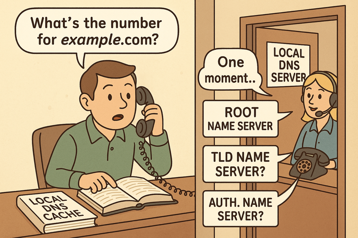 - PC는 example.com의 IP를 Local DNS Server에 물어본다.