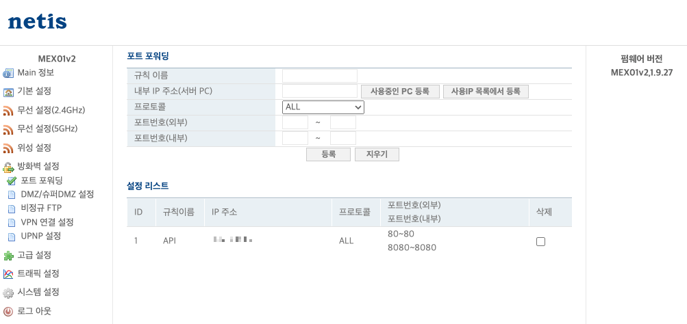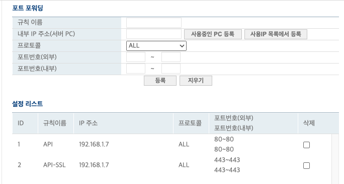 다시 공유기 포트포워딩 설정으로 돌아가 80포트 → 8080포트로 포트포워딩 해줬던 것을
