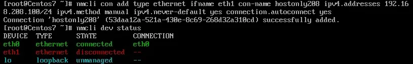 $ nmcli con add type ethernet ifname eth1 con-name hostonly208 \