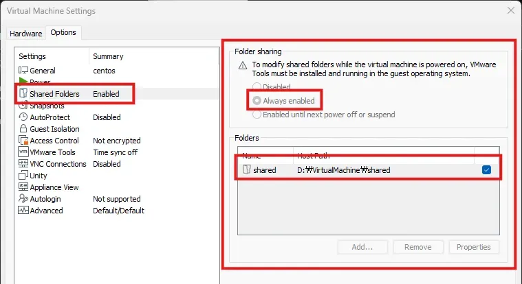 VMWare 공유폴더 설정